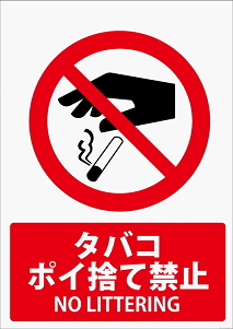たばこの吸い殻は所定の灰皿に捨てて下さい